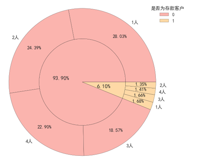 # 既存款又个贷的客户与存款但非个贷客户在家庭规模上的分布差异