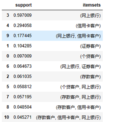 # 各类业务间的Apriori关联分析 Apriori算法找到频繁项集
