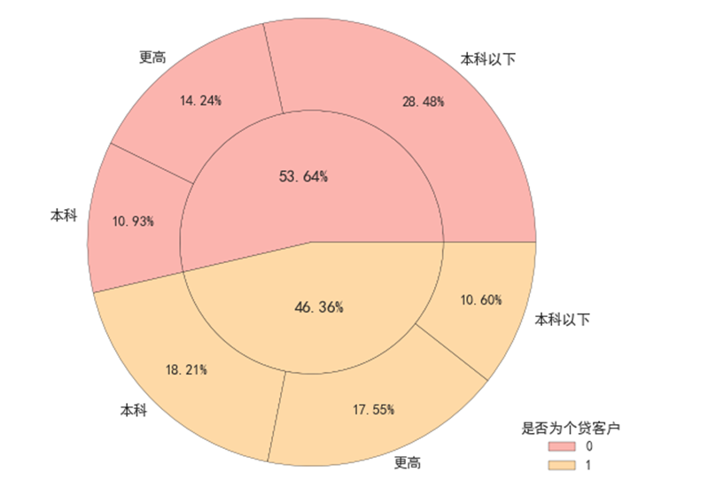 # 既存款又个贷的客户与存款但非个贷客户在文化程度上的分布差异