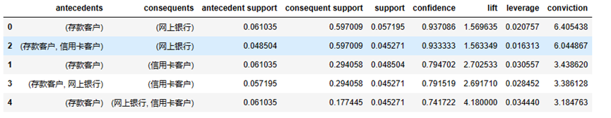 然后,运用Apriori关联规则算法分析了各类业务之间的关联,并重点总结出了存款客户中潜在个贷客户的特征。接着,根据以上分析结果尝试为该银行扩大各类业务客户基数,提高获客能力提出建议;