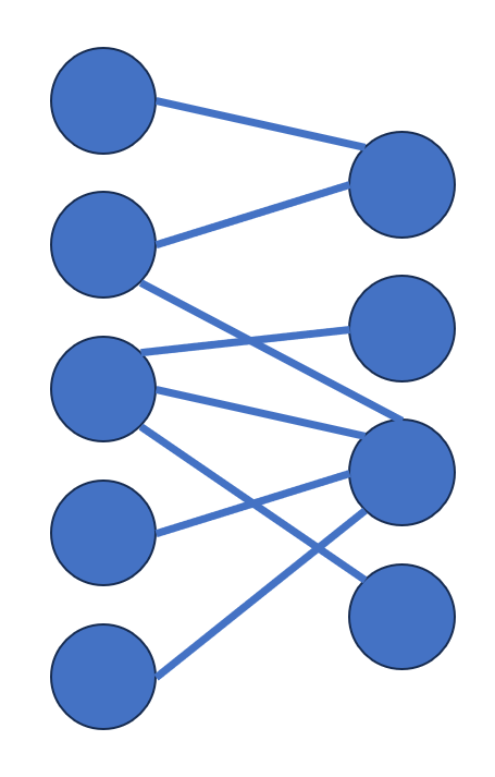 这样的一个图中,我们要将左边结点与右边结点匹配,且一个左结点只能匹配一个右节点,怎么找出最大匹配数?