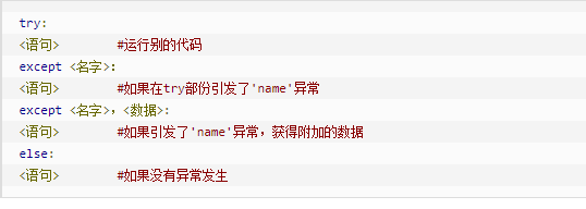 - 如果在try子句执行时没有发生异常,python将执行else语句后的语句(如果有else的话),然后控制流通过整个try语句。