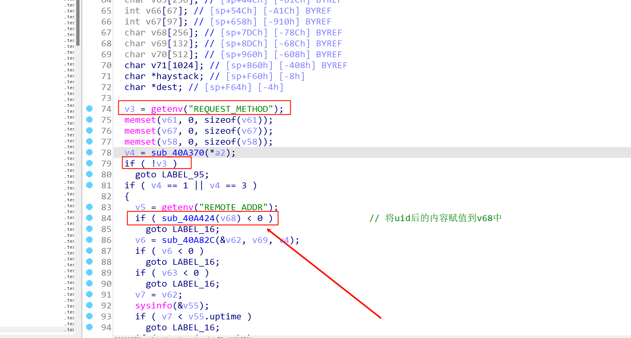 sub_40A424这个函数应该很熟悉吧,在复现dlink815的时候已经分析过了,其实就是把uid=后的数值获取我