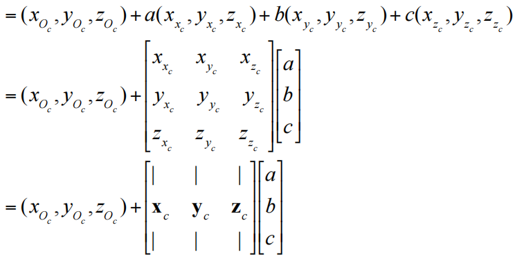 展开该式子,把子坐标的xyz轴都用父坐标在该轴上的分量去表示