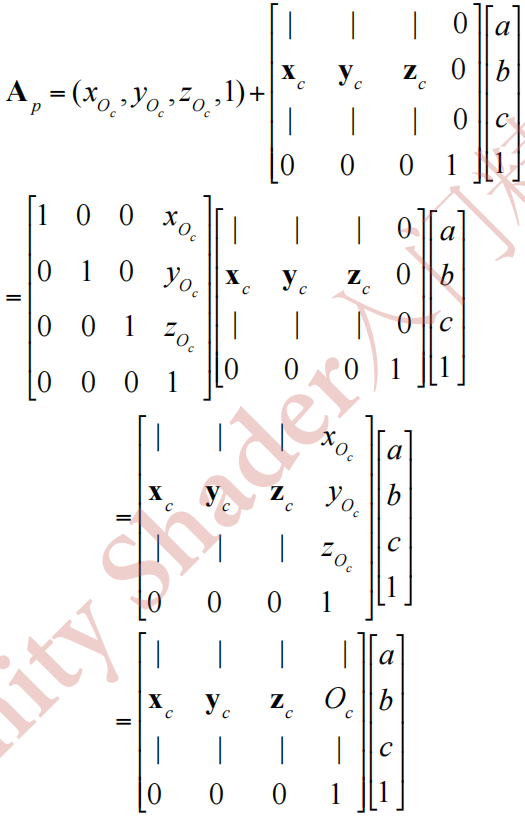 有一父坐标空间P,有一子坐标空间C,C中有一点A