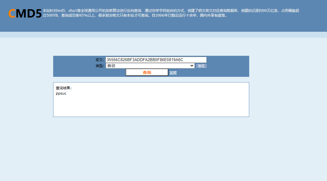 使用MD5解密最终结果为ppsuc