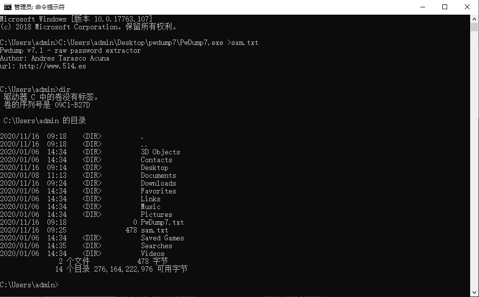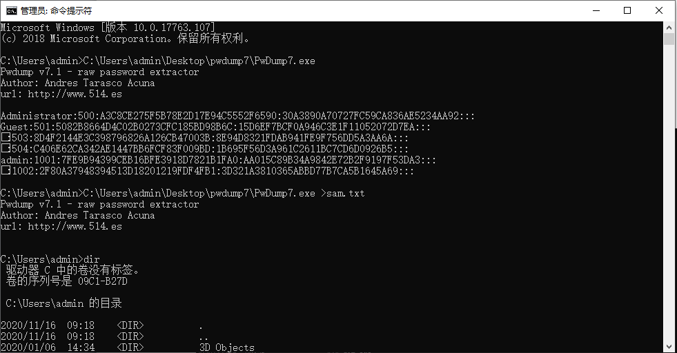 2.使用pwdump软件导出本机的sam文件