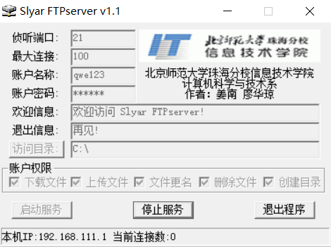 两个同学配合完成,A同学搭建FTP服务器,并新建用户,并设置登陆密码