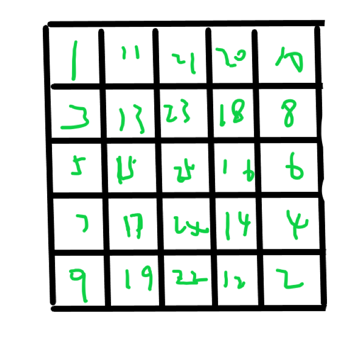 for(int j=1;j<=m;j++)b[a[make_pair(i,j)]]=i,c[a[make_pair(i,j)]]=j;
