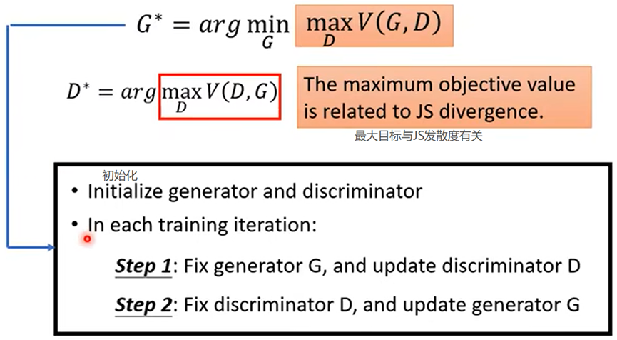 - Generator和Discriminator就是两个Network,在确定初始化参数后