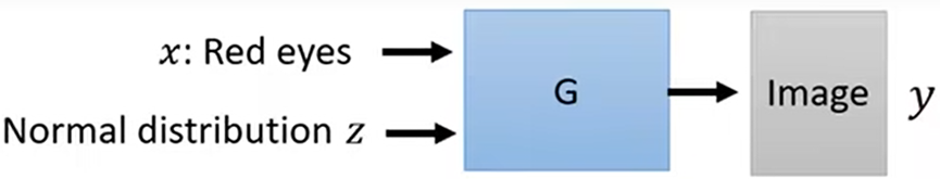 - 以上的Generator的输入都是一个随机的分布,现在要操控Generator的输出,在原基础上再传入一个值x,让Generator根据随机分布和x产生y