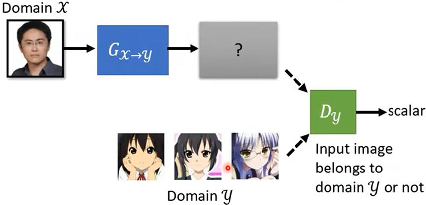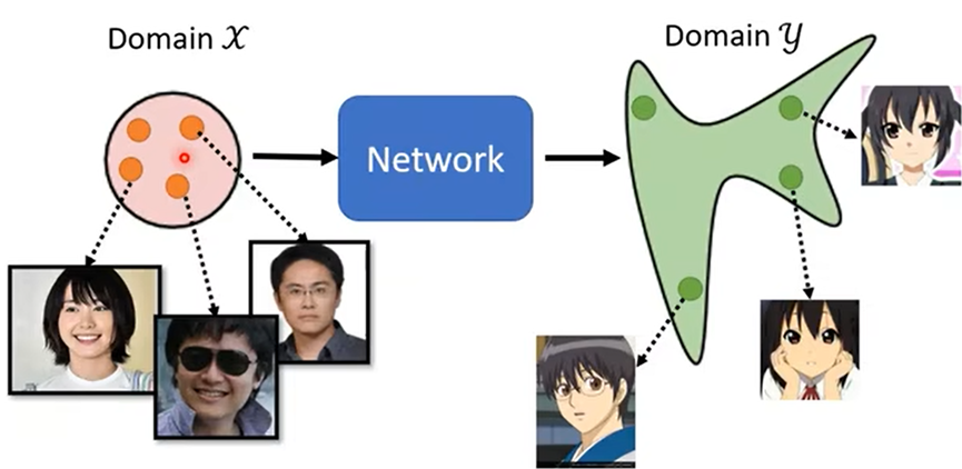 方法:训练一个输入为X域资料,输出为Y域资料的Network