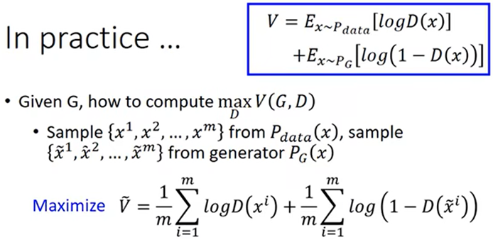 综上,求V(G,D)最大时就训练出了Discriminator: