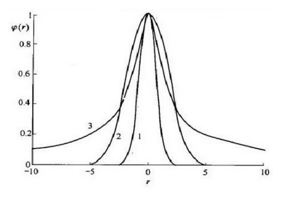 - \(\varphi(r) = exp(-\frac{r^{2}}{2\sigma^{2}})\)