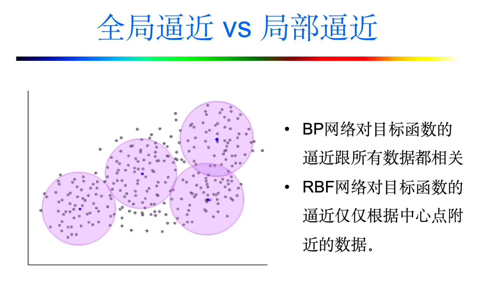 - 对网路输入空间的某个局部区域只有少数几个连接权值影响网络的输出,则称该网络为局部逼近网络