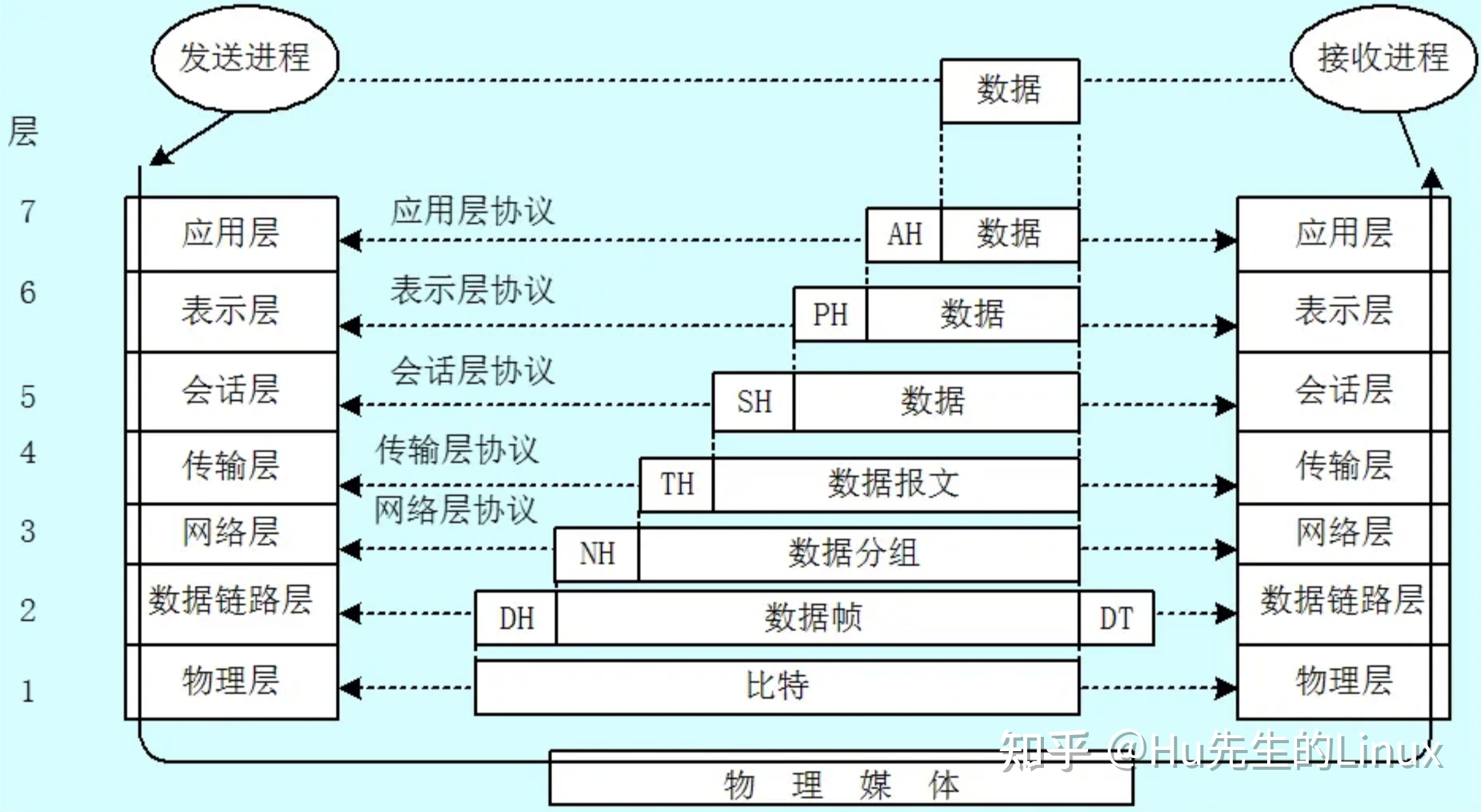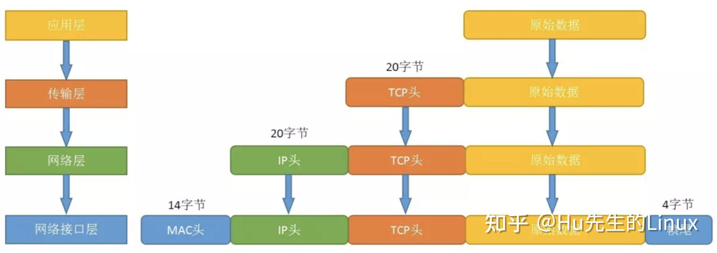每个分层中,都会对所发送的数据附加一个首部,在这个首部中包含了该层必要的信息,如发送的目标地址以及协议相关信息。通常,为协议提供的信息为包首部,所要发送的内容为数据。在下一层的角度看,从上一层收到的包全部都被认为是本层的数据。