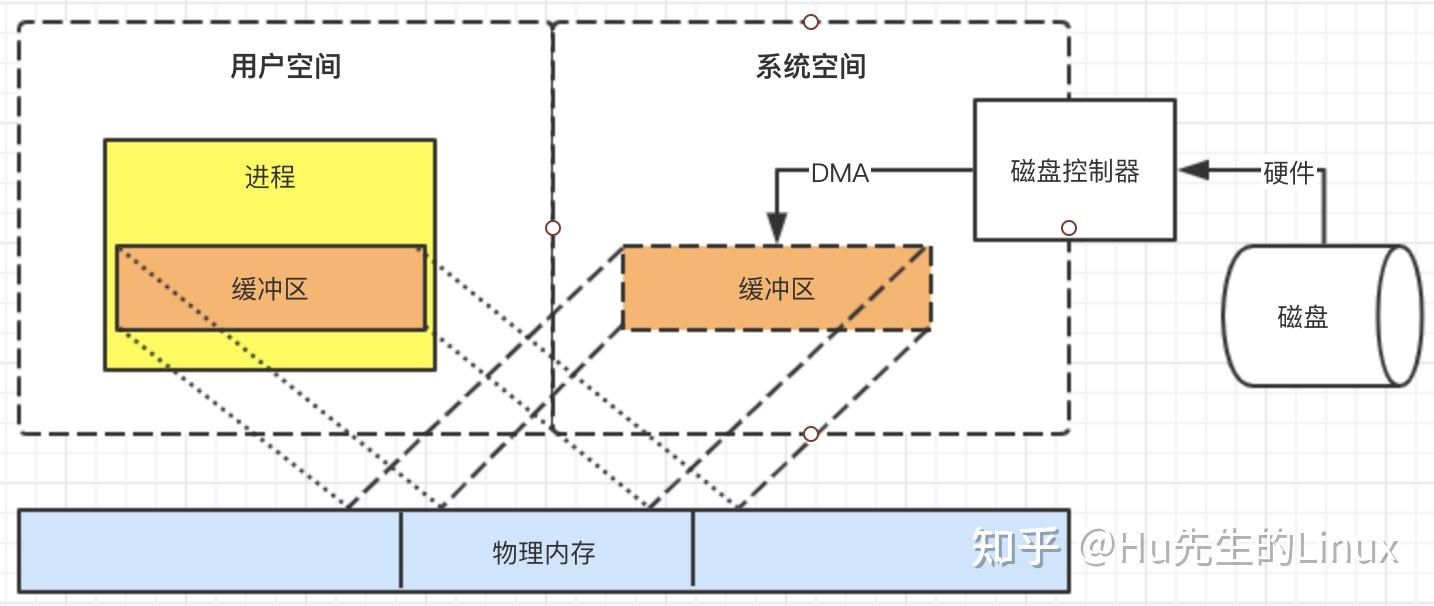 利用第一条特性可以把内核空间地址和用户空间的虚拟地址映射到同一个物理地址,这样DMA就可以填充对内核和用户空间进程同时可见的缓冲区了,大致如下图所示: