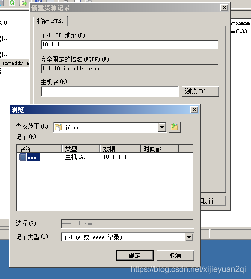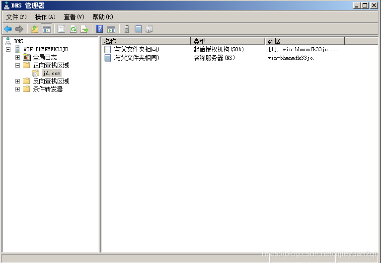 点击 刚刚新建的 jd.com 发现默认已经有2条数据。现在我添加一条记录。www这个域名的记录