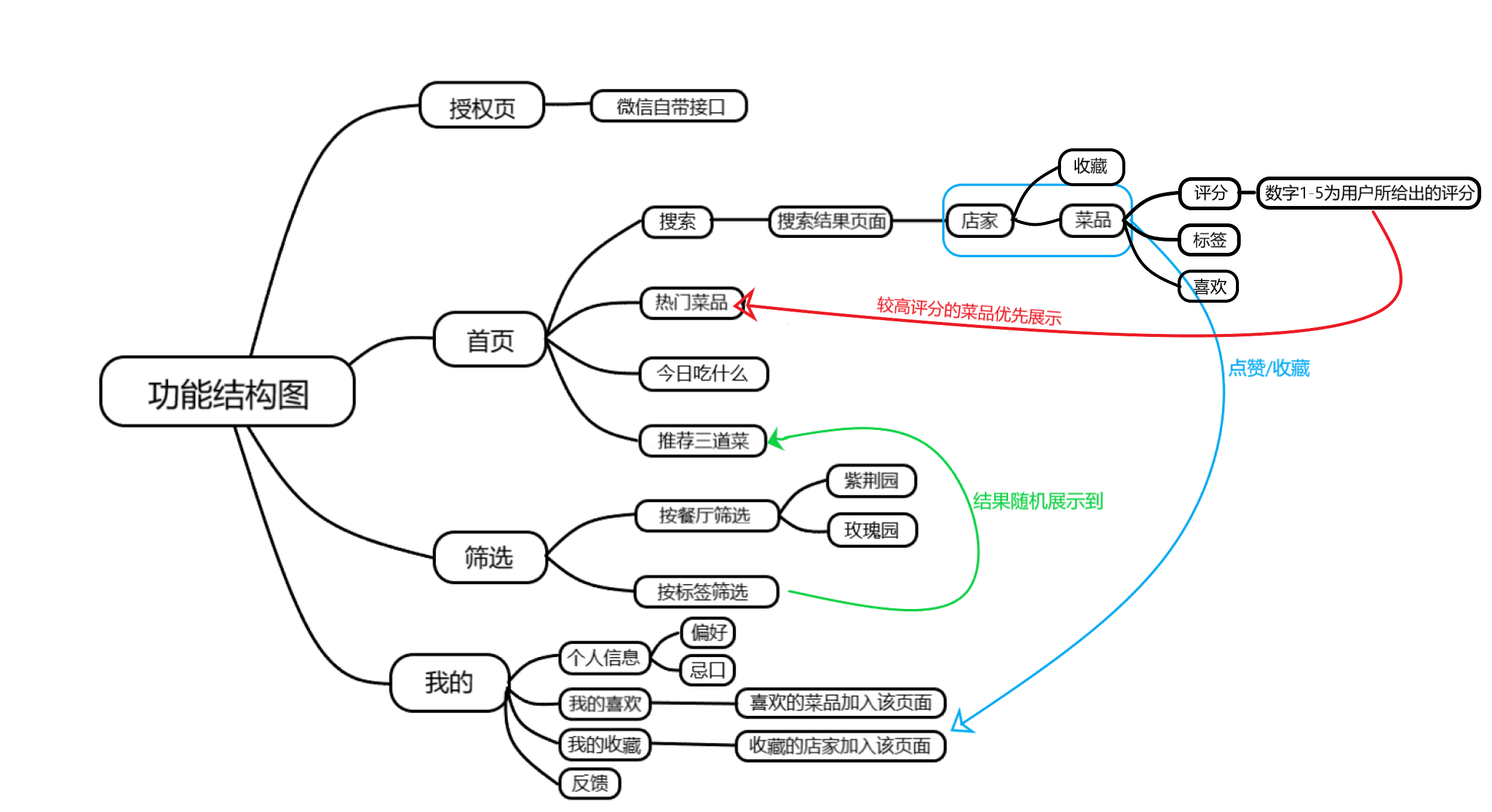 解决方法:根据不同人的想法我分别绘制了不同的功能结构图,后面开会的时候经过大家的商量决定选用哪张图。