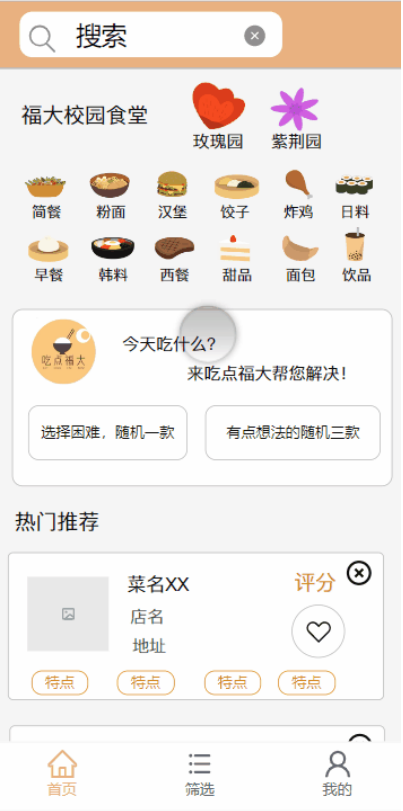 解决的问题:用户选择困难症,不知道去哪吃,吃什么