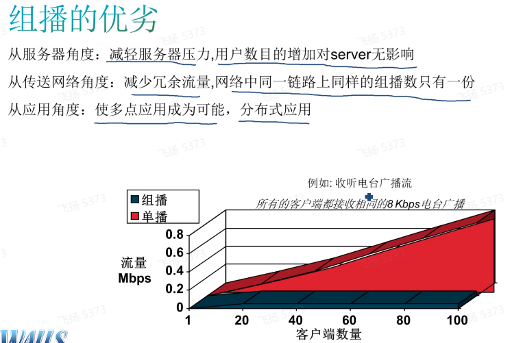 分布式应用,指可以多个接收者同时接收数据,更多应用在iptv上,证券交易所的实时数据变化