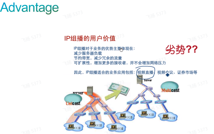 组播的劣势在于网络设计上,网络设计可能导致组播流量的延时增加或者丢包。