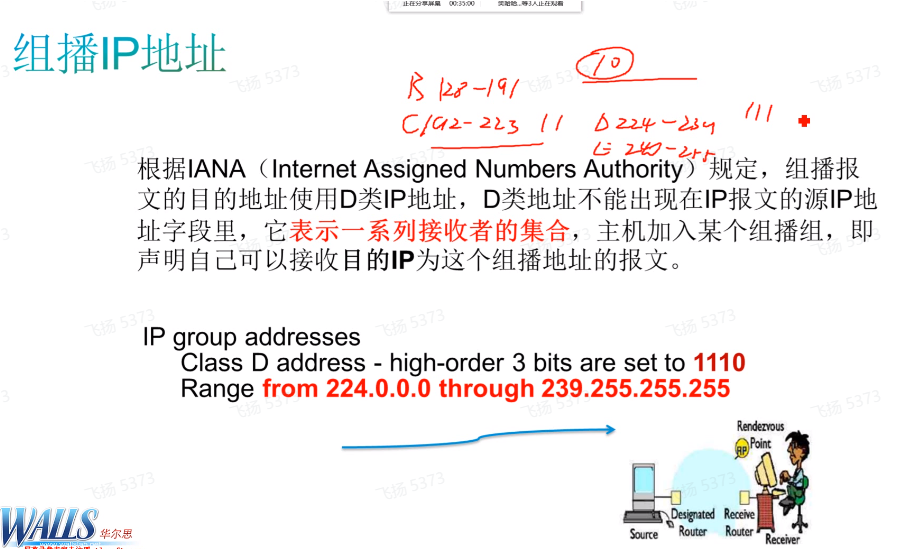 在组播地址里每一个地址都可以代表一个组,没有网络位和主机位的概念。网络位和主机位的区分主要用在单播地址上-因为在广播网络里,有两个特殊的地址需要保留,1是主机位全0,1是主机位全1。全0代表这个网段,而全1代表这个子网全部的设备-定向广播地址。