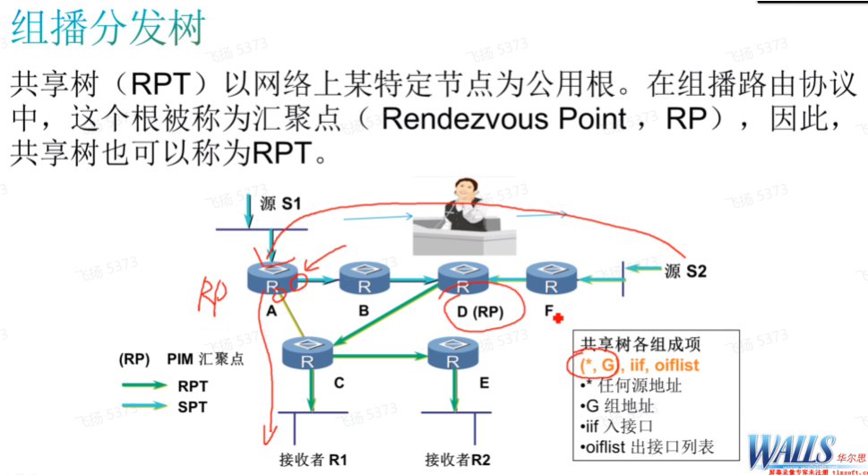 rpt主要用在pim-sm的网络中 ,*代表任意源。(该网络中接收者较少,需要用到拉的方式。同时需要构建从rp到接收者的spt树)