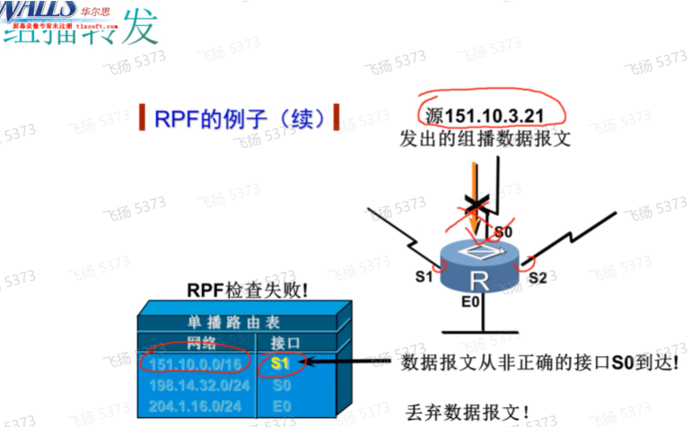 第四条:在华为路由表里,不可能存在掩码长度相同,但metric不同的路由条目。这种情况路由表只会保留一条metric小的。而在cisco中有些协议支持非等价负载分担-实现掩码长度相同,但metric不同的负载,ex eigrp,bgp也可以,那在这种场景要用于组播路由选路时,就需要match 这个metric。接收到组播流量后就进行rpf检查,判断接收流量的入接口=到达组播源的出接口,即转发组播流量,如果不是则丢弃。通过该方式可以避免组播流量的转发环路.