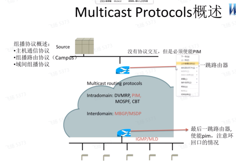 域内-同一个组播域内:可以部署上图dvmrp、pim…。类型6的lsa是用在mospf中。dvmrp属于距离矢量的组播路由协议,类似rip,通过距离矢量的方式构建跳数最短的组播转发路径。