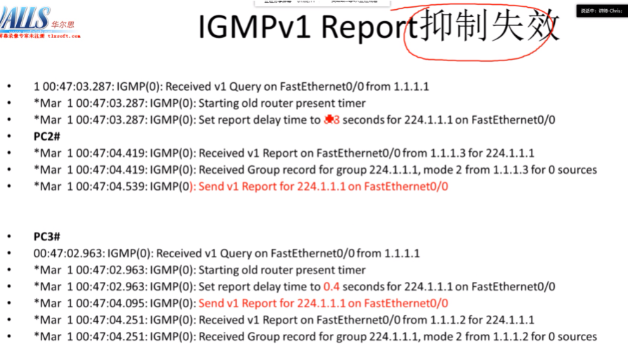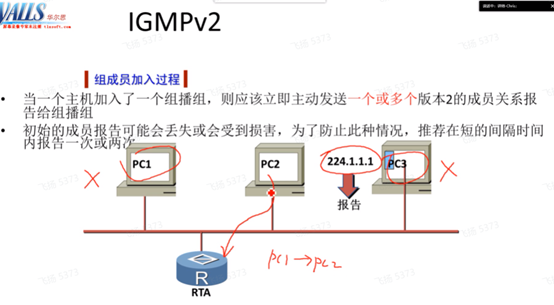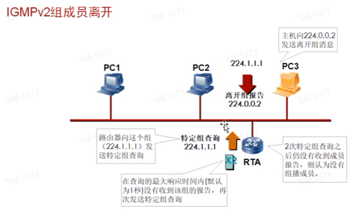 后期组成员不想再接收组播流量,就不会再回复report报文了。在igmp v1中,接收者离组,并不会主动告诉路由器。路由器只能通过60s查询是否还有组成员。3倍hello,这就有个180s内,路由器还认为该组还有人,就会继续向该组转发组播流量-浪费带宽和性能。