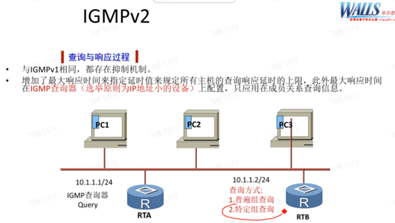接收者在接收到指定组查询后,会在本地启动定时器,0-1s内取值,计时器到期后就会向路由器回复report,如果路由器能接收到report,就说明这个组里还有接收者,路由器需要继续维护组关系。如果在发送两个特定组查询后,都没有收到任何的report,就说明组里已经没有人了,就将组删掉。V2里只需2s就可能知道组里还有没有其他人。V1需要180s