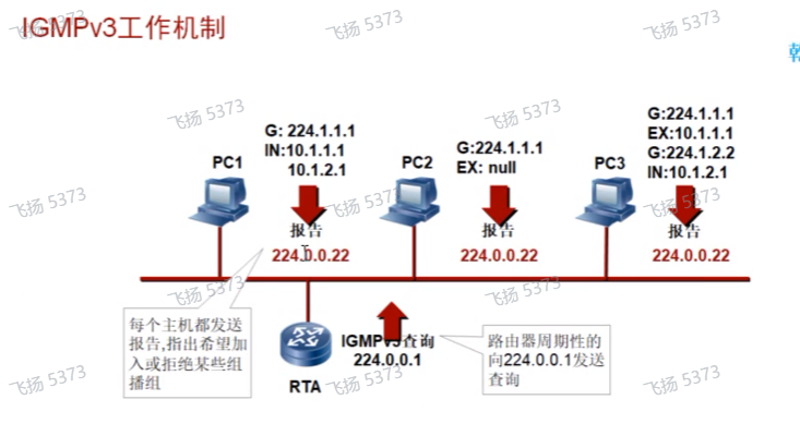 Igmp v3的组成员报告,并不是向v1和v2是发给需要加入的组的(dip),而是发给特定的组:224.0.0.2-只有叶路由器会监听这个组地址,那在v3里就不存在组成员报告的抑制机制,其他的组成员,即便能收到报文,但因为其不在哪个组里,也不会去分析组播组的报文,so在v3里并不存在成员报告的抑制机制