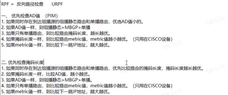 rpf的检查方式在所有厂商都是两种:ad(cisco称为ad,华为称为优先级);掩码长度。