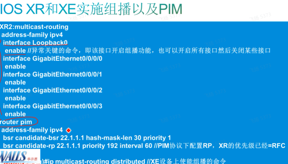 最后一条,在xe设备上(即普通的ios),还需要配置上面的命令,才能开启组播的功能。xr是不需要开启的。