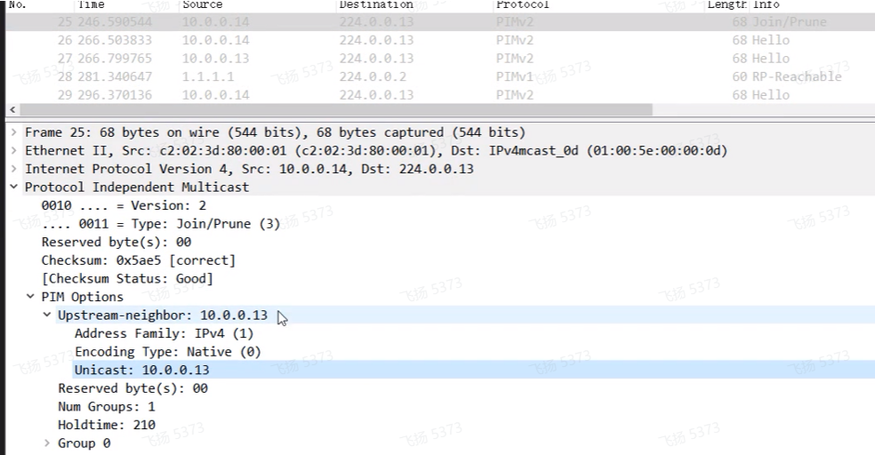 报文中的flag位需要理解,S,G的join就没有wc的置位。rp位置位,说明该join或prune报文是发给rp的