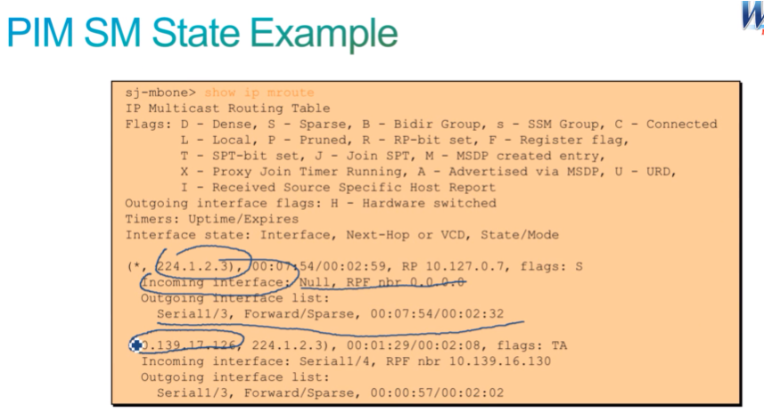 Iif-incoming if(接收组播流量的if);oiflist-outgoing if list(发出组播流量的if)