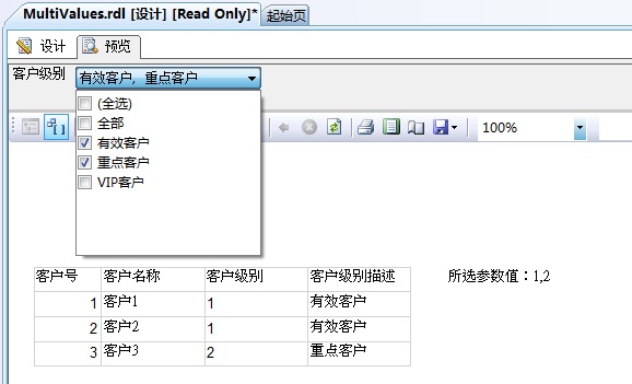 Reporting Services 2008 多值参数查询