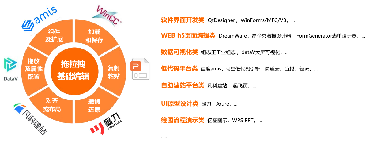 - element-ui、amis等代码或低代码框架,组件也能封装给UIOTOS用,用于嵌套、连线。
