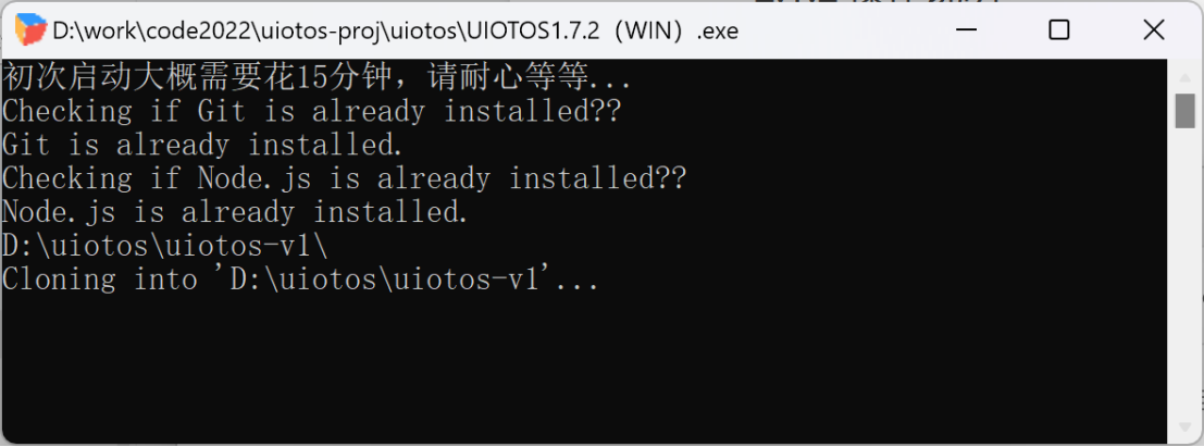 如果发现执行后,还是无法打开页面,多次重复尝试仍然如此,可以尝试将D盘根目录的uiotos目录整个删掉(先关闭控制台),再重新双击exe执行在线拉取文件,重复安装过程。