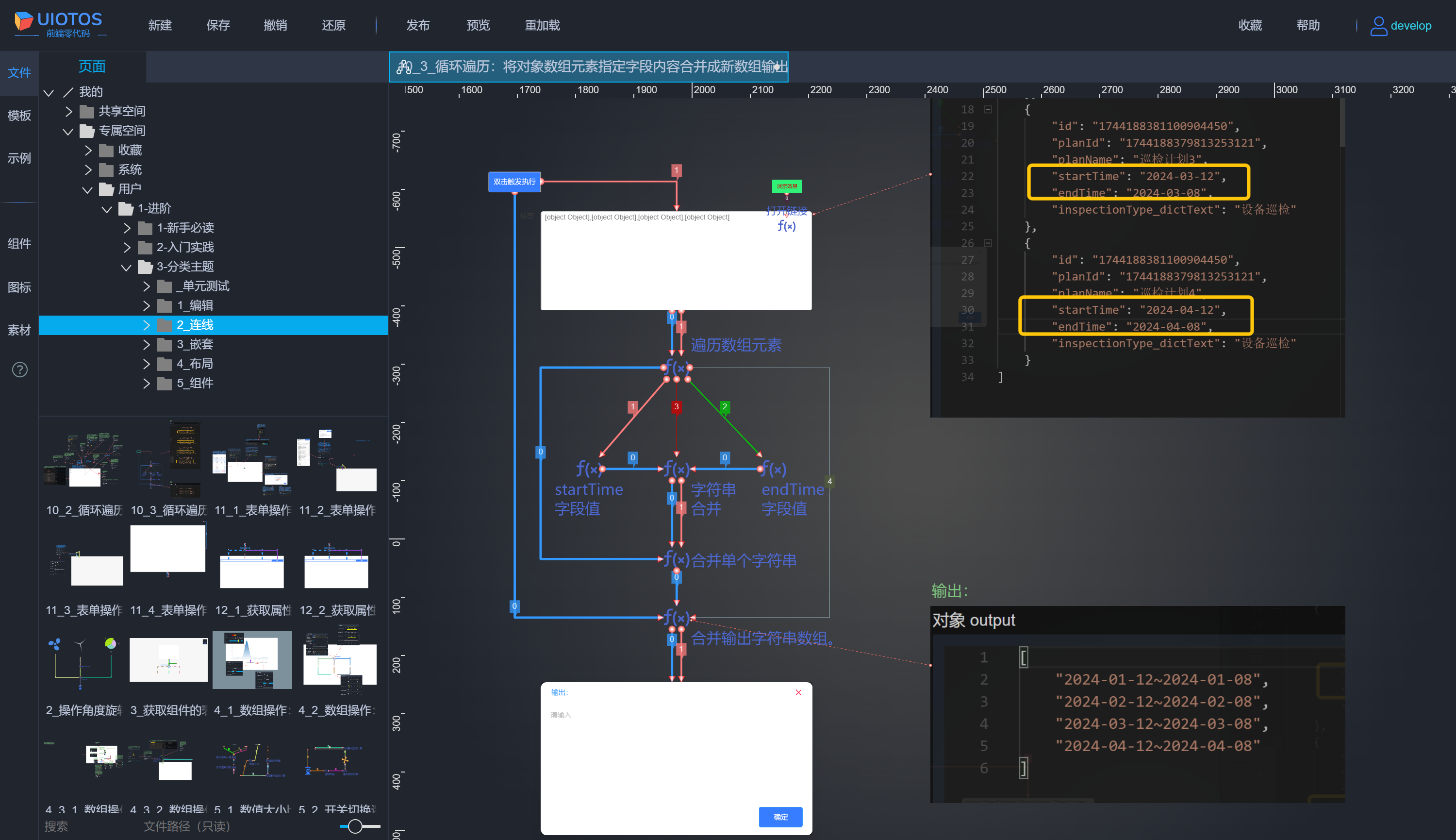 共享目录通常只读,不可删改,超管用户develop(专业版账号),可删改公共目录。高级版或专业版账号提供更多组件、属性以及用户目录空间下的进阶示例,如下所示。常规基础账号可作升级。