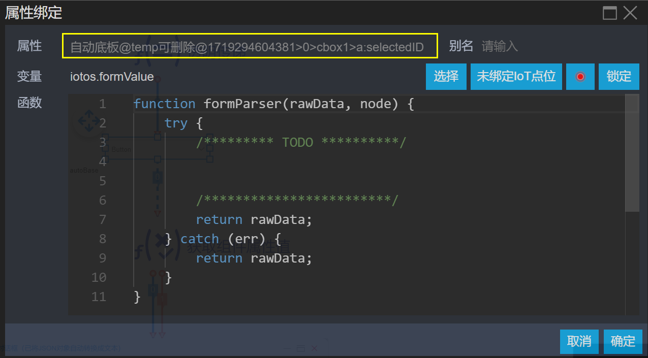 数据绑定支持对任意组件的任意属性,下拉选择绑定物联网平台数据点(内置支持IOTOS物联中台),免接口对接数据实时同步。