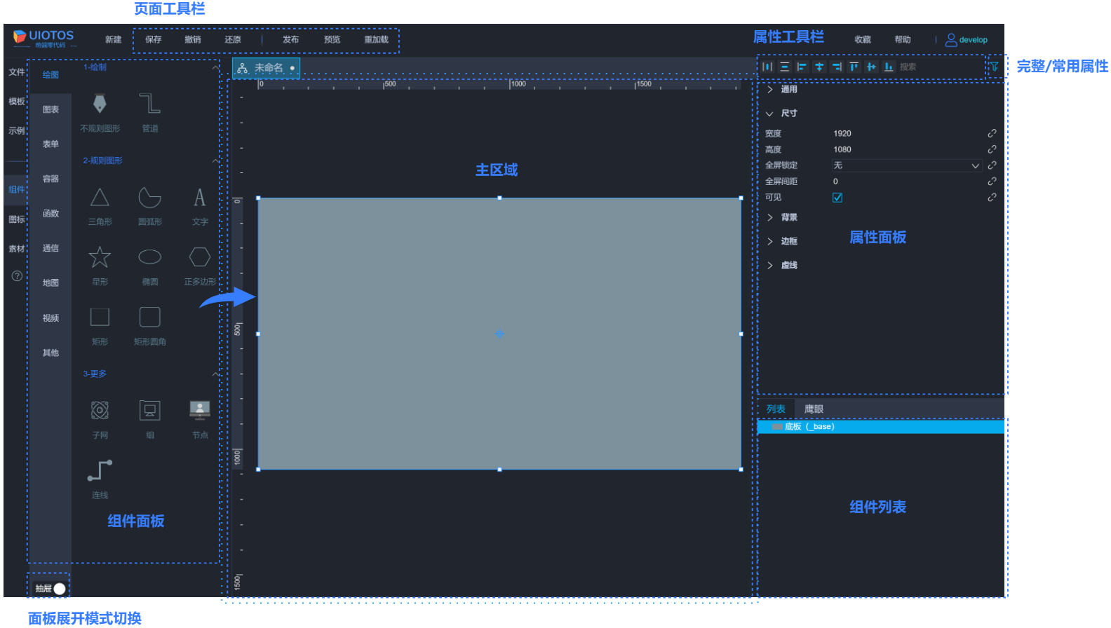 UIOTOS是一款开箱即用的前端工具,支持页面嵌套,用户可以0基础,像套娃一样,开发搭建IoT、后台管理、上位机、组态HMI等多类GUI界面应用,不止于可视化。