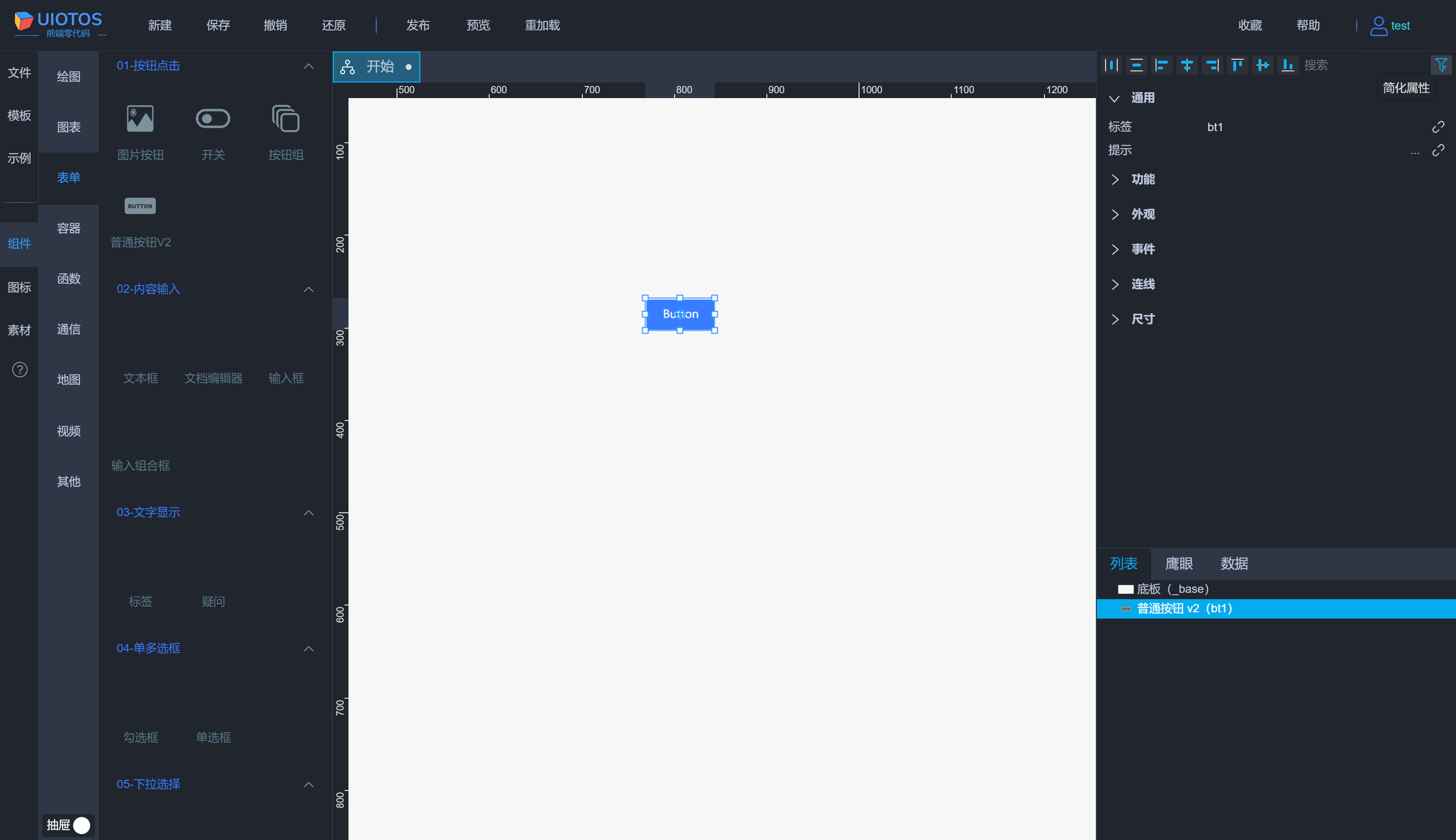 默认test或者常规注册用户,功能为基础版,对应组件的数量以及组件的属性,相对专业版更精简,对于初学入门也更简单。同时,若要搭建高度定制化的前端应用,建议才用高级版或专业版。