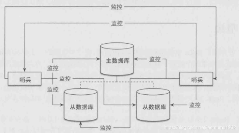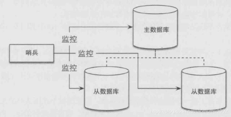 2. master出现故障时自动将slave数据库升级为master 哨兵是一个独立的进程,使用哨兵后的架构图