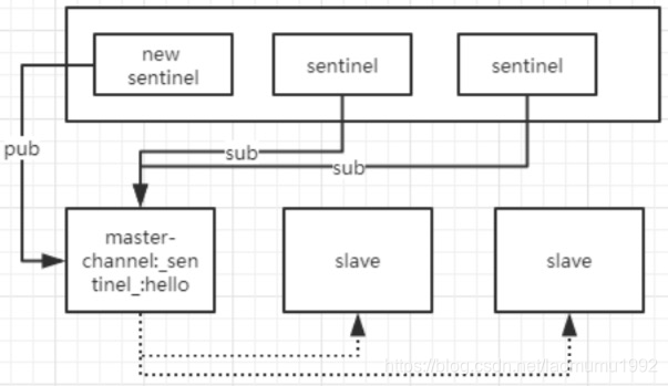 1. 需要相互感知的sentinel都向他们共同监视的master节点订阅channel:sentinel:hello