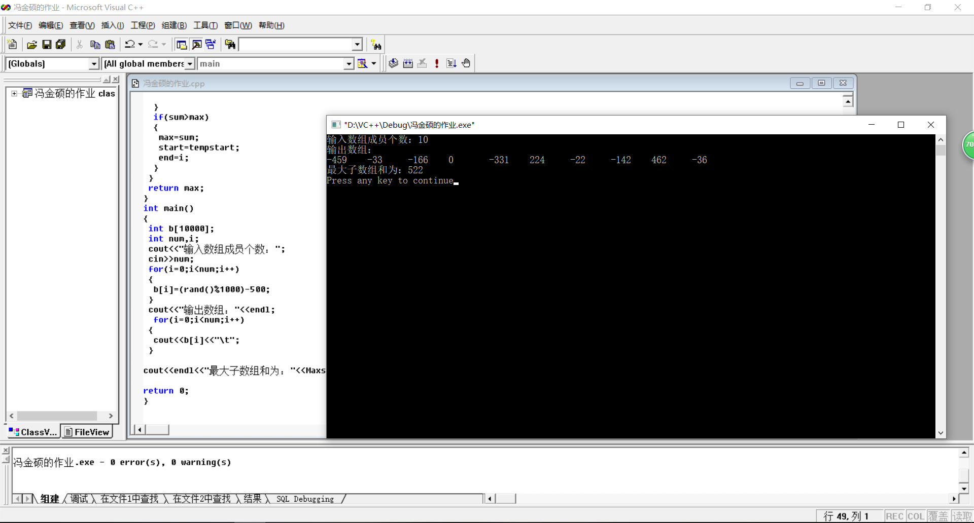 cout<<endl<<"最大子数组和为:"<<Maxsum(b,num)<<endl;