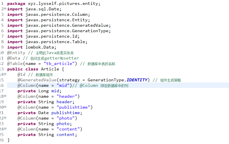 (1).在tb_article表中,content当中的数据是一篇文章,但是在Java代码中用的Entity类代码中content的类型是String,容量显然不够;