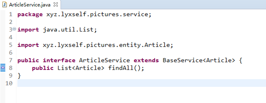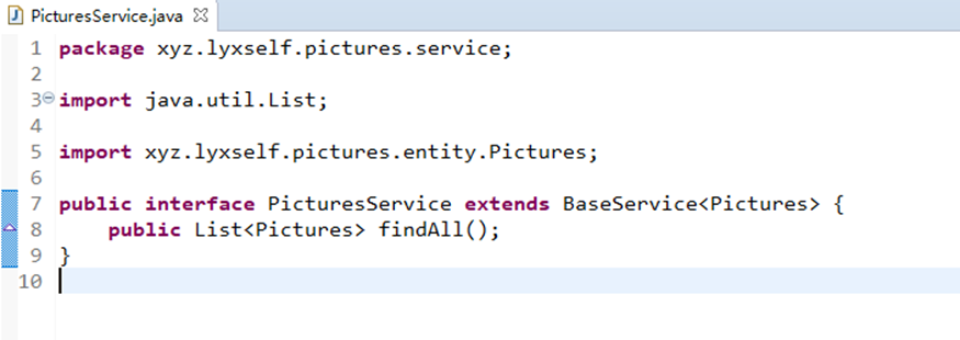 (1).最先写BaseService,之后再写其他的。每创建一个Service都要继承(BaseService)