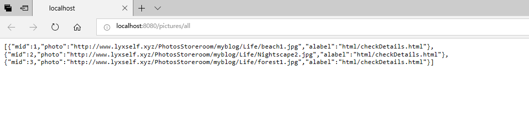 2.在浏览器中访问:http://localhost:8080/pictures/all